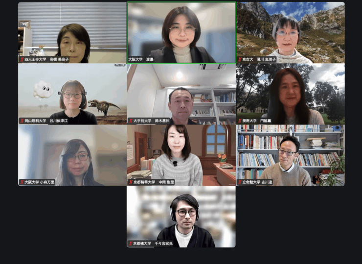 参加者:9大学10名(大手前大学、岡山理科大学、京都女子大学、京都精華大学、京都橘大学、四天王寺大学、摂南大学、立命館大学、大阪大学)